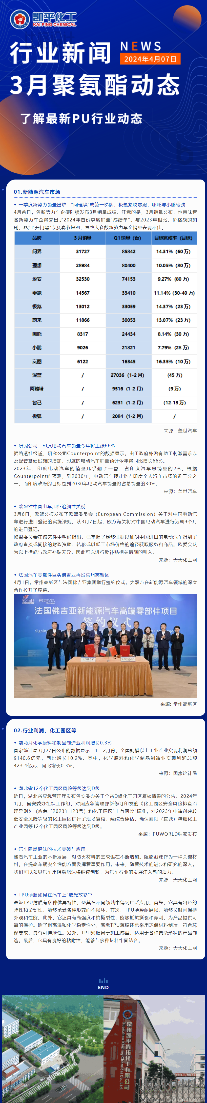 【凯平PU资讯速递】3月聚氨酯行业相关动态